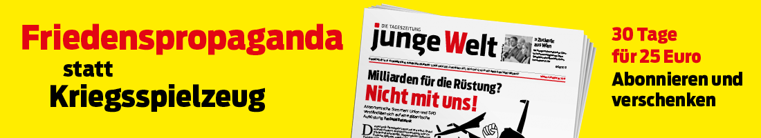 Viel Licht scheint es dieser Tage nicht zu geben, was nicht nur an den kürzeren Tagen, sondern vor allem an düsteren Entwicklungen in dieser Welt und den noch düsteren Reaktionen unserer Regierenden und einstimmenden Medien liegt. Diesem Kriegsgebrüll setzt die junge Welt etwas entgegen: Friedenspropaganda!