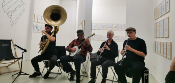 Schräge Zeiten – Moderne trifft Geschichte, planvoll-wild gemischt zeitreisend besinnen sich hier vier Musiker*innen,sonst in der freien, experimentellen oder zumindest zeitgenössischen Jazz-Szene verortet, auf die Geschichte zurück mit minutiösen Arrangements der Musik von King Oliver, Scott Joplin, Jabbo Smith und einigen weiteren Zeitgenossen.
