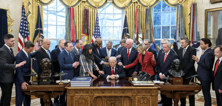 Zum Glück hat Deutschland mit der FAZ und deren Koherausgeber Berthold Kohler einen Wächterrat. Der steht mit Trump im Durchgeknalltheitswettbewerb und nimmt das wörtlich: Deutsche an die Straße von Hormus.