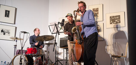 AboJazz kann eine so besondere Energie haben, dass man meint zu schweben. Dieses Gefühl gab die Berliner Jazzcombo Tee.Trio ihrem Publikum am Dienstag abend in der junge Welt-Maigalerie in Berlin-Mitte. Von Gisela Sonnenburg