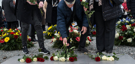 Anlässlich des 81. Jahrestags der Befreiung der Konzentrationslager der Nazis in Buchenwald und Mittelbau Dora haben am Sonntag Überlebende und Angehörige Rosen auf dem ehemaligen Appellplatz abgelegt.