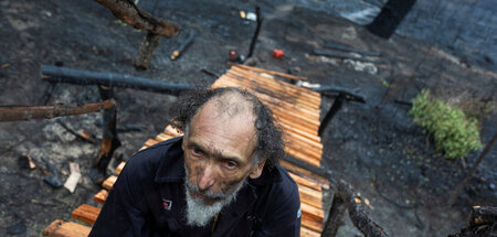 Im argentinischen Teil Feuerlands verheeren Waldbrände weite Landstriche. Einwohner Carlos Ibarra versuchte am Sonntag, eine zerstörte Brücke wiederherzustellen.