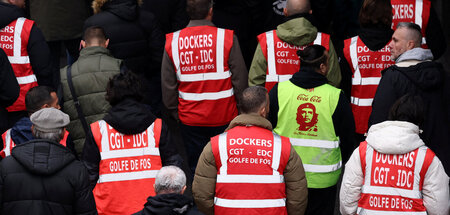Landesweit protestieren Streikende in Frankreich – wie im Bild Hafenarbeiter der CGT aus Golfe de Fos – derzeit gegen geplante Kürzungsmaßnahmen der Regierung für kommendes Jahr