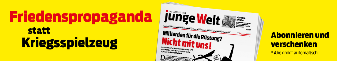 Sie erhalten ein dreimonatiges Online-Abo jungen Welt für 18 Euro. So sind Sie täglich bestens mit marxistisch orientierter Lektüre ausgerüstet. Das Aktionsabo endet automatisch.