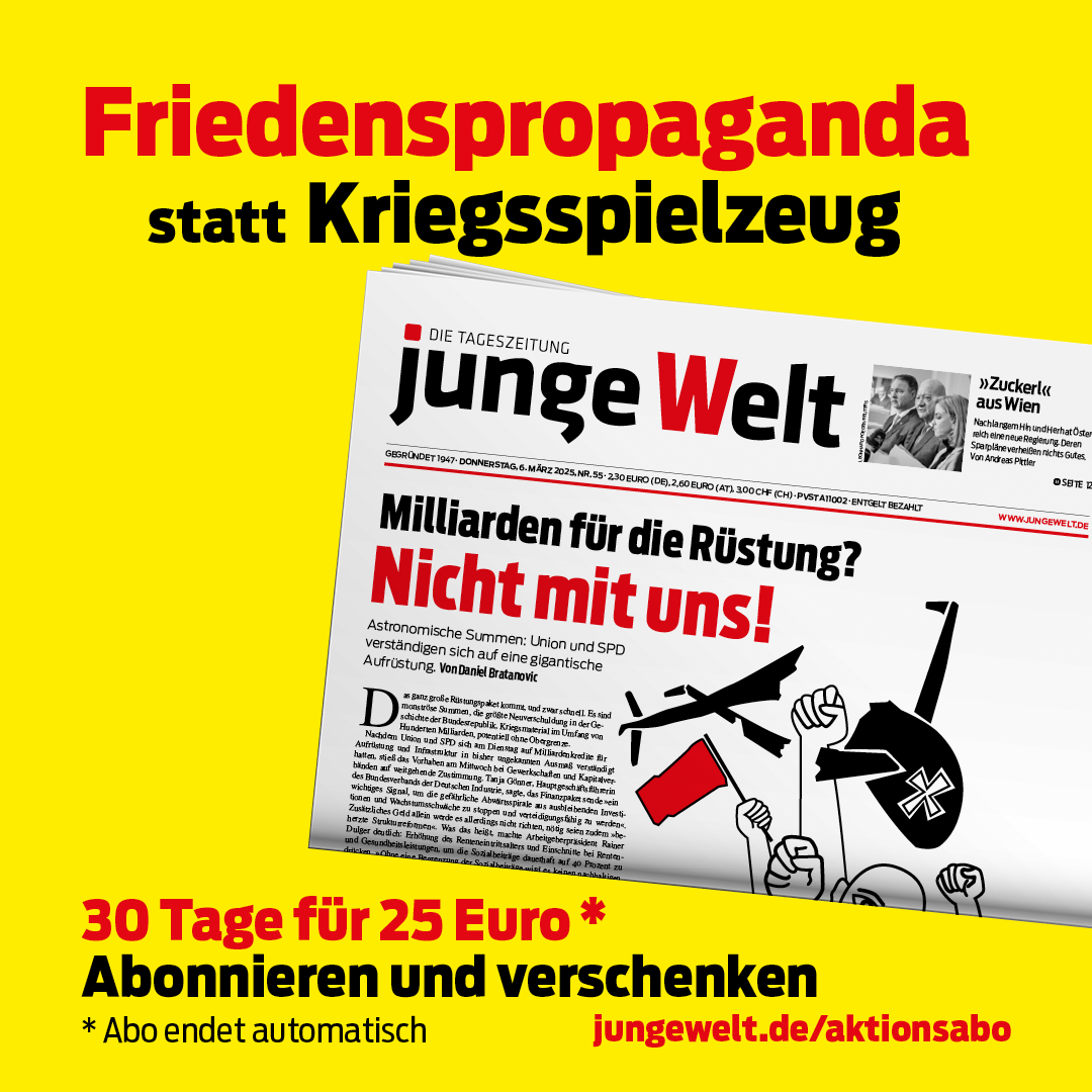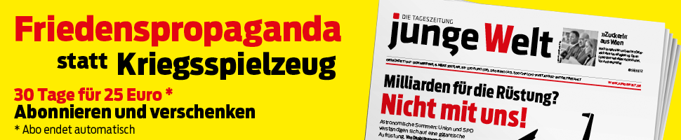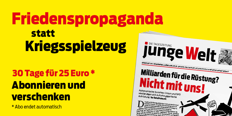 Grafik für die Bewerbung eines junge Welt Aktionsabonnements (800 x 400) verlinken mit: https://www.jungewelt.de/aktionsabo