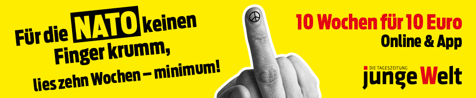 Grafik für die Bewerbung eines junge Welt Online-Aktionsabonnements (970 x 200) verlinken mit: https://www.jungewelt.de/onlineaktionsabo