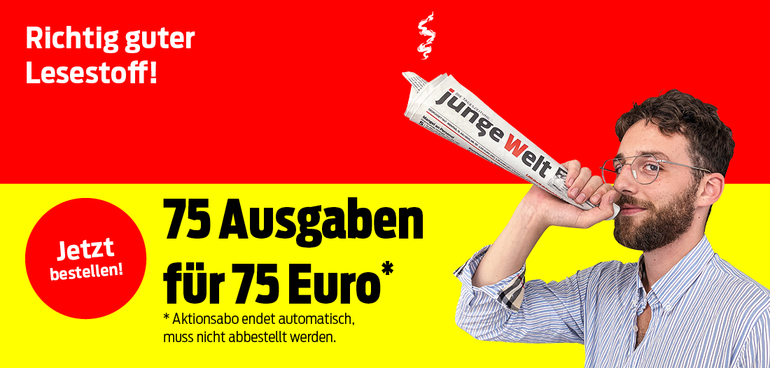 Konkretes Handeln bedarf gelegentlich eines zusätzlichen Anreizes. In den kommenden vier Wochen bedanken wir uns bei allen, die sich mit einem Abo oder einem Umstieg an der Aktion beteiligen, mit unserem Buch »Der Bandera-Komplex«. Dort wird ausführlich über den ukrainischen Faschisten Stepan Bandera und seine Wirkung bis in die Gegenwart berichtet. Während Sie diese Zeilen lesen, wird gerade auf der Buchmesse in Frankfurt am Main das Wirken dieses Herren und seiner Nachfolger für die Rechtfertigung aktueller und künftiger Kriege genutzt. Mit unserem Buch und mit der täglich im Print- oder Digitalformat erscheinenden jungen Welt erhalten Sie das nötige Gegenmittel, um nicht der schleichenden Faschisierung zu unterliegen. In diesem Sinne wäre es auch besonders wertvoll, wenn Sie sich an dieser Aktion beteiligen, indem Sie in Ihrem Bekanntenkreis einen neuen Abonnenten gewinnen könnten. Ob Sie das Buch selbst behalten oder dem neuen Leser schenken, bleibt Ihnen überlassen. Jedes Abo zählt!