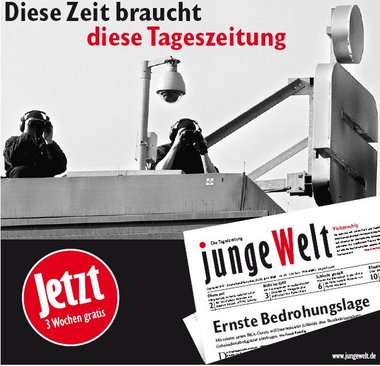 Genau das aber ist unser Ziel: Aufklärung mit gut gemachtem Journalismus. Sie können das unterstützen. Darum: junge Welt abonnieren für die Pressefreiheit!