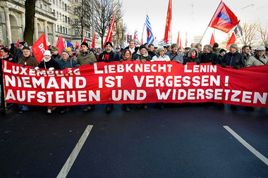Immerhin werden Liebknecht-Luxemburg-Demonstration und Gedenken regelmäßig in den Printmedien erwähnt. Die taz macht es dem ZDF gleich und manipuliert die Teilnehmerzahl gewaltig nach unten: »Wie jedes Jahr versammelten sich mehr als zehntausend Menschen in Berlin, um der vor 90 Jahren von Freikorps-Soldaten ermordeten KPD-Gründer (...) zu gedenken«, heißt es auf Seite sieben der Montagausgabe. Obwohl, 80000 bis 90000 sind ja in der Tat mehr als zehntausend Menschen. Im Lokalteil wird dann auf Seite 21 nachgebessert: »Seit der Wende nehmen jährlich mehrere zehntausend Menschen an dem Gedenken teil, nach Angaben eines Sprechers der Linken waren es diesmal 80000.« Als ob es vor der Wende dieses Gedenken nicht gegeben hätte.