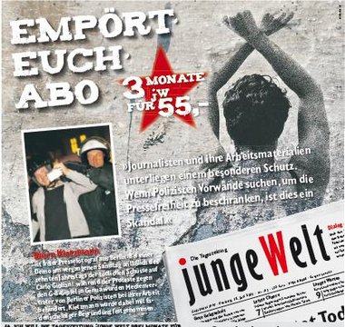 Genau das aber ist unser Ziel: Aufklärung mit gut gemachtem Journalismus. Sie können das unterstützen. Darum: junge Welt abonnieren für die Pressefreiheit!