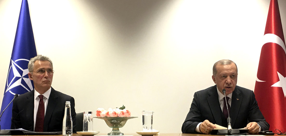 Brüssel. Der türkische Präsident Recep Tayyip Erdogan hat für seinen militärischen Einsatz in Syrien mehr Hilfe von der NATO gefordert. Man erwarte »klare Unterstützung« von den Verbündeten, sagte Erdogan am Montag nach einem Treffen mit NATO-Generalsekretär Jens Stoltenberg in Brüssel. Die Grenze der Türkei zu Syrien sei gleichzeitig die südöstliche Grenze der NATO zu der Konfliktregion.