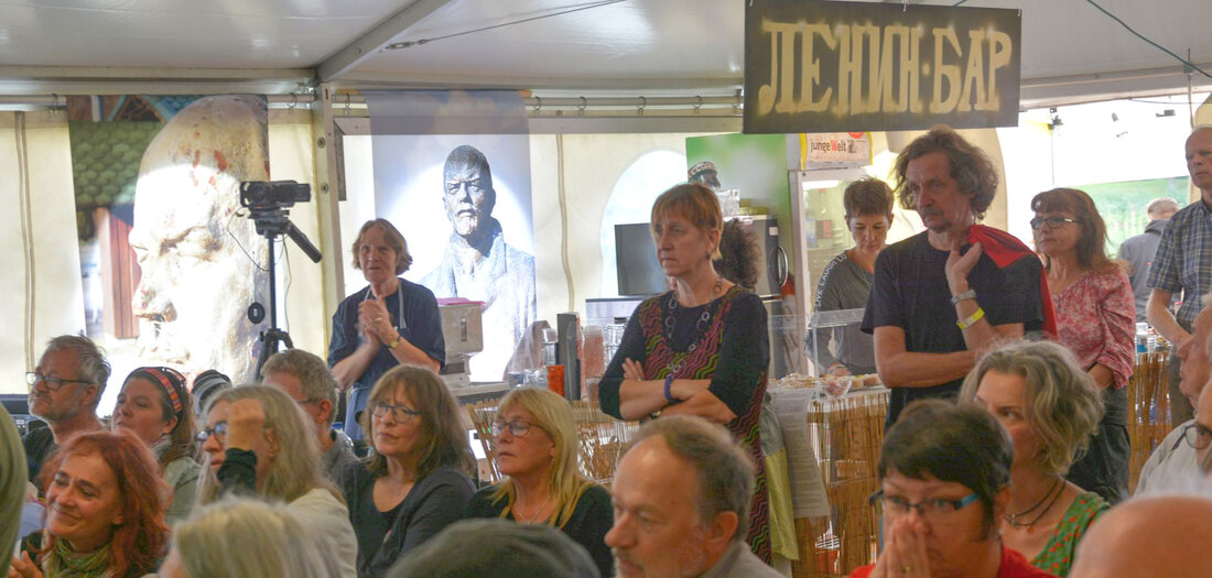 Mit der Lenin-Bar knüpfen wir an eine weitere UZ-Pressefesttradition an: Sie wird schon ab Freitag mittag und während des ganzen Festes auf der jW-Terrasse eine Auswahl erlesener Weine und Speisen anbieten. Mit einem Glas gut gekühltem Weißwein oder einer kleinen Stärkung lässt es sich gut auf unserer Terrasse neben Rosa aushalten, während man eine politische Debatte führt oder mit Genossinnen und Genossen plauscht, die man nun schon so lange nicht mehr sehen konnte.