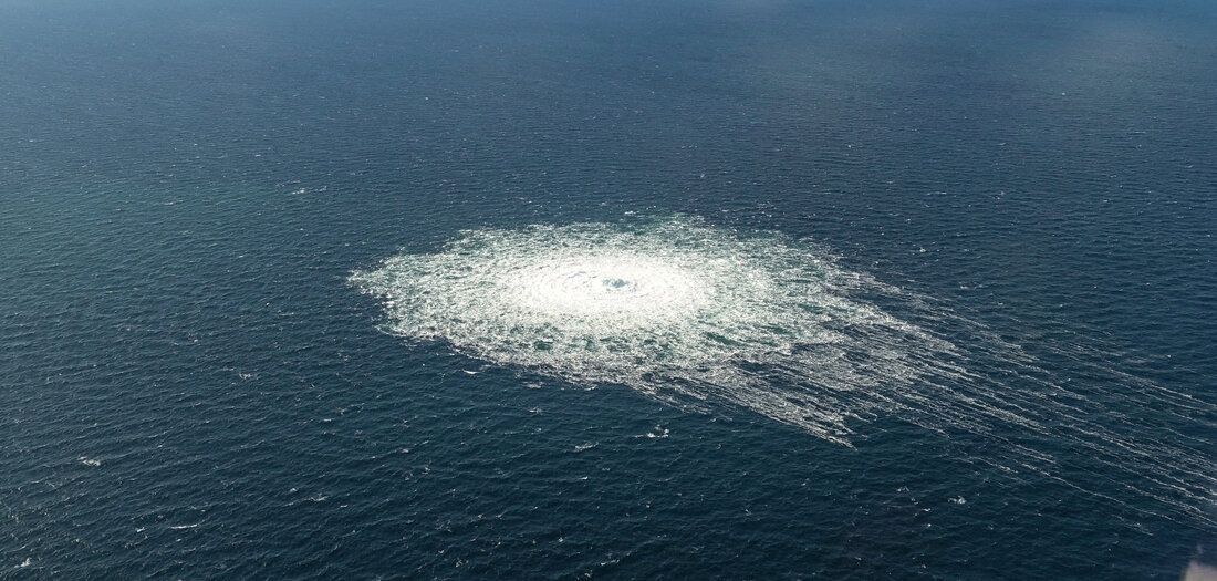 Gas weicht aus aus der zerstörten Nord-Stream-Pipeline bei der Insel Bornhol (27.9.2022)