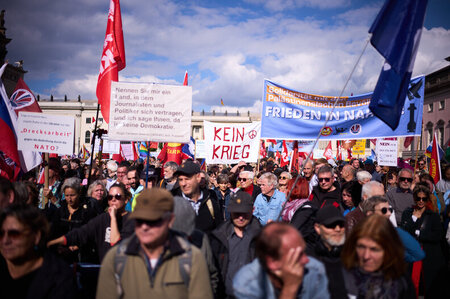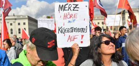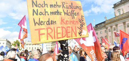 Die Friedensbewegung bleibt hartnäckig: 20.000 Menschen auf dem Bebelplatz in Berlin (Foto) und 15.000 auf dem Schlossplatz in Stuttgart haben am Freitag mit parallelen Kundgebungen unter der Losung »Nie wieder kriegstüchtig! Stehen wir auf für Frieden!« gegen die Außen- und Aufrüstungspolitik der Bundesregierung, für die Beendigung der Kriege in der Ukraine und in Gaza, gegen die Wiedereinführung der Wehrpflicht, die Stationierung von US-Mittelstreckenwaffen in Deutschland und die forcierte Militarisierung von Bildung, Hochschulen und Gesundheitswesen demonstriert. Aufgerufen hatte ein breites Bündnis bundesweiter und lokaler Organisationen und Gruppen der Friedensbewegung, darunter DFG-VK, IPPNW, das Netzwerk Friedenskooperative und Pax Christi. Bei den Kundgebungen sprachen auch Vertreter von Die Linke, BSW und SPD. Mit eigenen Blöcken vertreten waren die DKP und die MLPD. In Stuttgart hielt die ehemalige EKD-Ratsvorsitzende und Landesbischöfin von Hannover, Margot Käßmann, eine Rede. (jW)