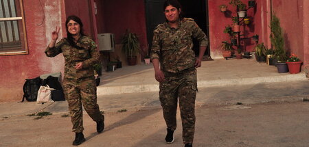 Eine weitere Uniform ist schwer zuzuordnen, aber eine ganze Truppe trägt sie – wir erfahren, dass diese Frauen zu einer Spezialeinheit gehören, die Einsätze in den Gefangenenlagern mit Kämpfern des »Islamischen Staats« (IS) und deren Angehörigen absolviert, dort neue IS-Zellen auflöst und Waffen entfernt. Frauen, IS, kämpfen – es sind Worte, die auch in unserem Kopf trotz feministischen Bewusstseins einfach nicht zusammengehören wollen. Können Frauen wirklich mit Waffen Islamisten entgegentreten und sie auch noch besiegen? Sind sie dafür mutig und stark genug? Es ist fast peinlich, wie tief auch bei uns der Glaube sitzt, dass Frauen manche Sachen vielleicht doch nicht können.