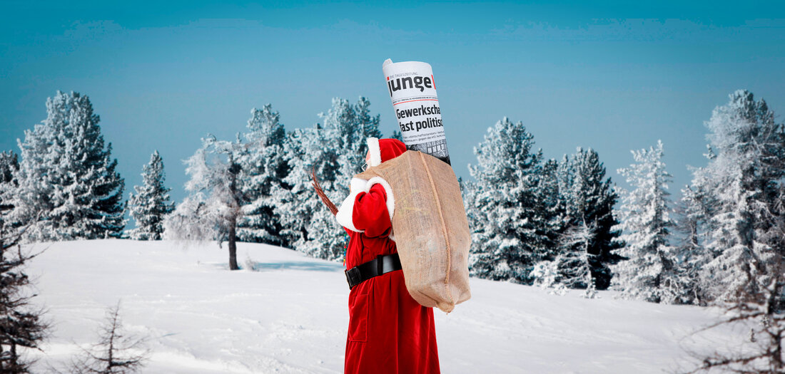Auch die Tageszeitung junge Welt fühlt sich gleich mitbeschenkt: Geschenkabos erhöhen unsere Reichweite, und die beschenkte Person abonniert die Zeitung anschließend vielleicht sogar dauerhaft. So trägt Ihr Weihnachtsgeschenk langfristig dazu bei, das Fortbestehen der jW zu sichern – Sie tun also Gutes, der Mann mit der Rute wird Sie verschonen, und Sie können mit einem guten Gewissen ins neue Jahr starten. Mehr gute Vorsätze sind eventuell gar nicht nötig.