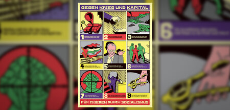 Jetzt geht die Ausstellung auf Reisen. Anlässlich der Münchener »Sicherheitskonferenz« werden an diesem Sonnabend ausgewählte Plakate auf dem antimilitaristischen Fest im Eine-Welt-Haus in München zu sehen sein. Die Arbeiten zeigen in vielfältiger Bildsprache den Zusammenhang zwischen Aufrüstung und Sozialabbau, zwischen NATO-Expansion und globaler Ausbeutung.