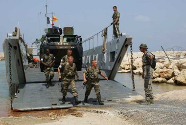 in verschiedenen Teilen Libanons zu Lande und zu Wasser stationiert