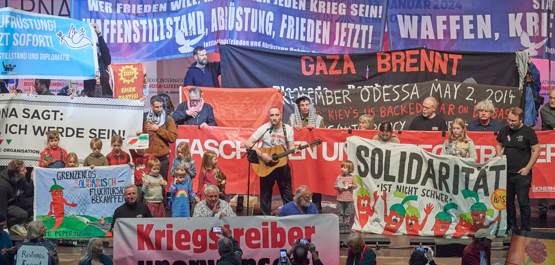 Wer am 13. Januar im Berliner Tempodrom gehört hat, wie Kuba auch 65 Jahre nach der Revolution trotz der Verbrechen des Imperiums seinen Weg geht, wie Eritrea endlich ein funktionierendes Gesundheitswesen etabliert hat, wie die Westsahara, die letzte Kolonie Afrikas, um ihre Befreiung von den Statthaltern der EU und der USA kämpft, wer die Manifestation für einen gerechten Frieden in Nahost und für Solidarität mit Palästina erlebte, erhielt nicht nur ein richtigeres Bild von der Welt als es ein Scholz je haben kann, er bekam auch gezeigt: Die alten Mächte können nicht mehr; die ewig mit Massakern von diesen überzogenen Völker wollen nicht mehr.