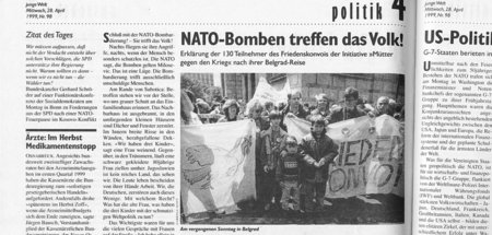 Anlässlich des Überfalls auf die Bundesrepublik Jugoslawien vor 20 Jahren erinnert junge Welt an die »humanitäre Intervention« der NATO von 1999.