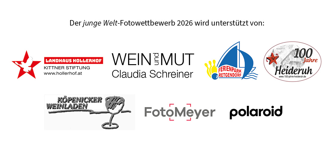 Sie möchten den junge Welt-Fotowettbewerb mit einem Preis unterstützen, z. B. einem Buch, Gutschein oder Kurztrip in Ihre Region o.ä. ? Dann freuen wir uns, Sie als Sponsor auf unseren junge Welt Online-Plattformen und Printmaterialien bekanntzugeben. Wenn Sie dazu mehr erfahren möchten, freuen wir uns über eine E-Mail an anzeigen@jungewelt.de oder einen Anruf unter: 030/53 63 55-38.